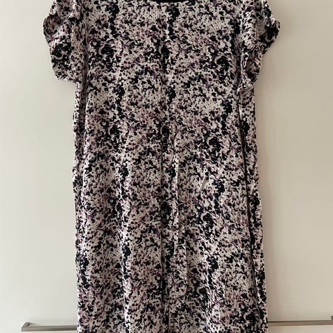 Sommerkjole, orange/hvid/sort, størrelse One Size Der er rund hals, lille ærme, der er bærestykke. 95%bomuld og 5% elastine. Kan sendes.
