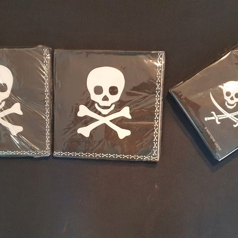 Servietter med kagemand. Stadig pakket ind. 12 servietter i pakken. 15 kr.