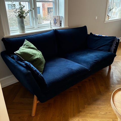 2 personers Blå velour sofa