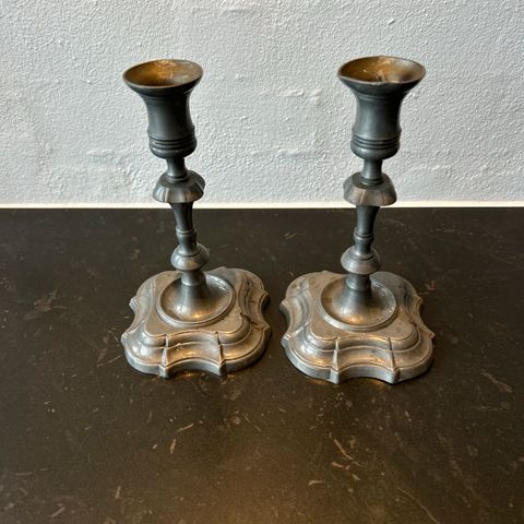 2 stk ens lysestager i tin