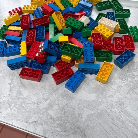 Lego Duplo, 3 store poser, i alt ca. 17 kg. Mange biler, fx brandbil, gravemaskine, Batman biler mm. Inkl. mange forskellige figurer - Spiderman, Batman, Toystory mm. Flere af figurerne og bilerne er der to af. Mange forskellige dyr, så man kan bygge en stor zoo. Inkl. to store grønne plader til at bygge på.