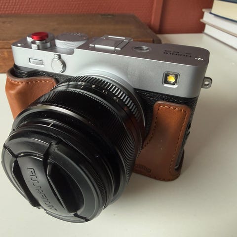Næsten ikke brugt og meget fin stand. Etui i læder medfølger. Modlysblænde kan også medfølge.