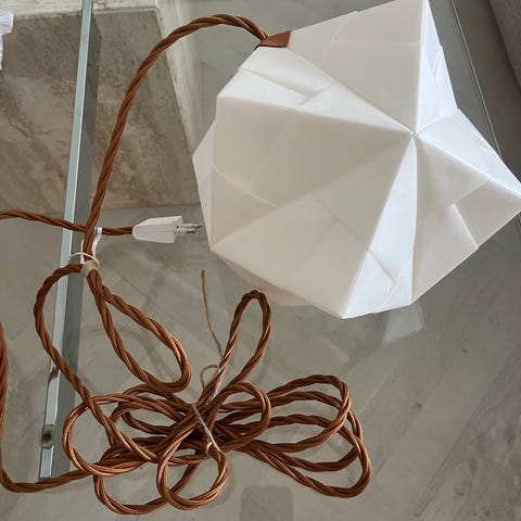 Mindre brugsspor på den ene side af skærmen, der dog ikke kan ses når lampen er tændt. Ny skærm kan købes fra Flos og udskiftes nemt.