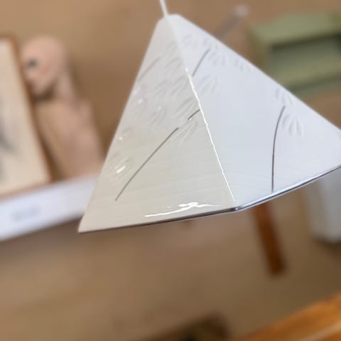 Flos væglampe designet af Tobia Scarpa. Lampen monteres på væg og har en stor, kvadratisk skærm i hvidt tekstillignende materiale, der giver et diffust og blødt lys. Konstruktionen holdes stramt udspændt i hjørnerne, og der ses buede detaljer i kontrastfarve på fronten.