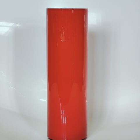 Glasvase i orange og hvidt glas. Virkelig dekorativt vase med få brugsspor, næsten som ny.