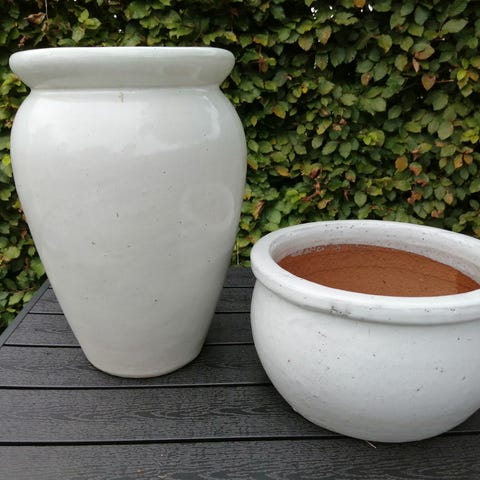 Flotte grønne kvalitets havekrukker i flot grøn glasur - frostsikker kvalitet