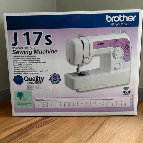 Brother NV10 symaskine i hvid og rosa. Elektronisk model til 220-240V, 50Hz, 42W. Symaskinen har indbygget display og betjeningsknapper på fronten samt drejehjul til valg af sting. Medfølgende fodpedal og strømledning fremgår af billederne. Velegnet til almindelig syning i hjemmet, fx reparation af tøj og mindre syprojekter.