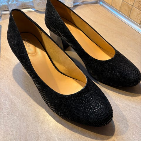 Lækker sko i ruskind med spænde foran. Hæl højde - 4,5 cm. Mål indvendig længde - ca. 26 cm. Meget velholdt - fejler ikke noget. Ikke ryger hjem