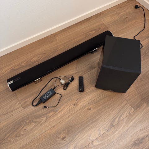 Argon Octave soundbar og Argon Bass 8 subwoofer. Kabler og fjernbetjening medfølger.
