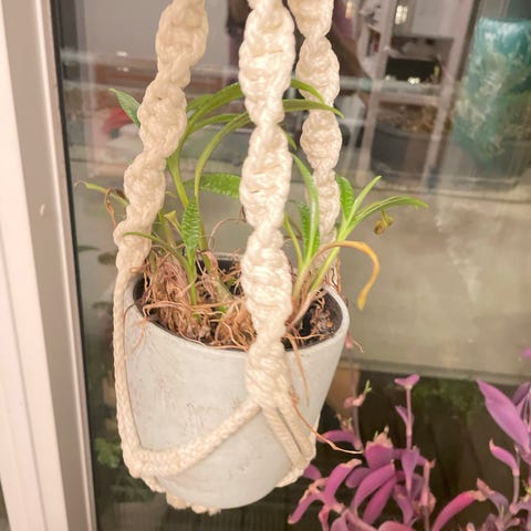 IKEA planteophæng til væg i macramé, hvid. Sættet består af flere ophæng til potteplanter, som kan hænges på væg eller fra loft. Ophængene er udført i flettet snor i lys/hvid farve og er velegnede til mindre og mellemstore potter. Kan bruges til indendørs dekoration af stue, køkken eller andre rum, hvor man ønsker at hænge planter op for at spare gulvplads og skabe et samlet udtryk på væggen.