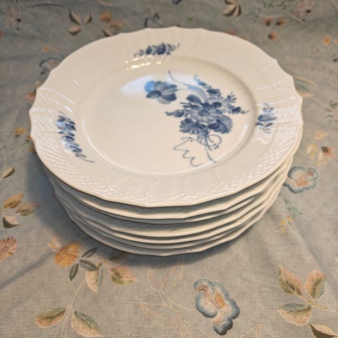 12 stk. Royal Copenhagen tallerkener – Blå Blomst (1. sortering)