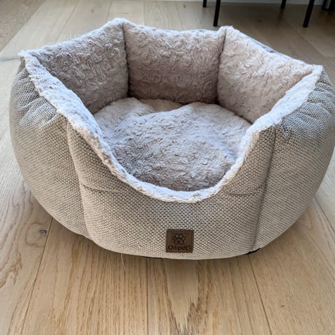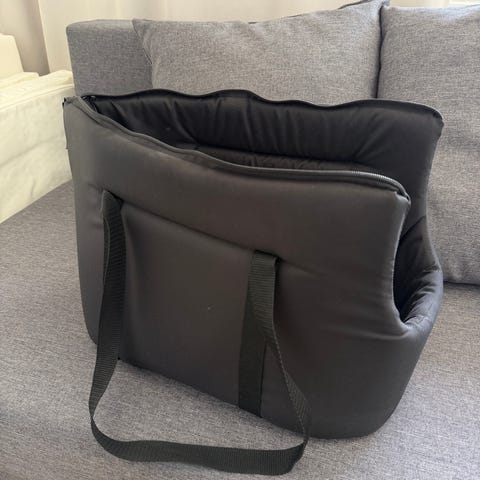 Superlækker Ollipet hundekurv til transport med lommer på siderne, liner til at fastgøre puden og line til at sætte i seleholder kr. 350.