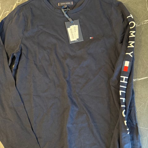 Tommy Hilfiger Script Logo T-shirt til mænd i størrelse L. T-shirten er blå og fremstillet i bomuld. Modellen har rund hals og frontprint med Tommy Hilfiger logo. Egnet som hverdags-T-shirt eller til afslappet brug. Julegaven der aldrig blev byttet.