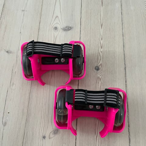 Skøjtebeskyttere til kunstskøjter i pink plastik. Sættet består af to par beskyttere, som monteres uden på skøjteklingerne for at beskytte dem under gang uden for isen og under opbevaring. Beskytterne har justerbar længde og lukkes med små plastspænder, så de kan tilpasses forskellige størrelser skøjter. Velegnet til almindelige kunstskøjter med standard klingeprofil.