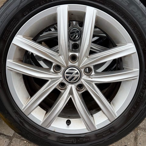 Rigtige flotte of fine VW alufælge med dæk, ca 4 mm mønster tilbage.