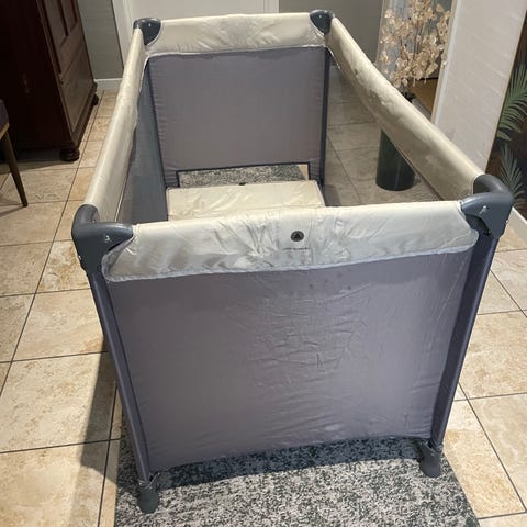 Jollyroom Beemoo rejseseng i sort. Sengen er sammenklappelig og leveres med madras i flere sektioner samt transporttaske. Rejsesengen har netpaneler i siderne, som giver ventilation og mulighed for at se barnet. Egnet til brug som midlertidig seng til baby og småbørn på rejser eller som ekstra seng i hjemmet.