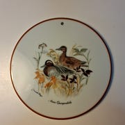 Dekorativ rund vægplade i keramik med indgraveret bladmotiv på forsiden. Pladen har mørk overflade med lysere bladdekoration i midten og koncentriske ringe langs kanten. Bagsiden er forsynet med små dupper samt ophæng, så den kan hænges på væggen. Velegnet som vægdekoration i stue, køkken eller andre rum i hjemmet.