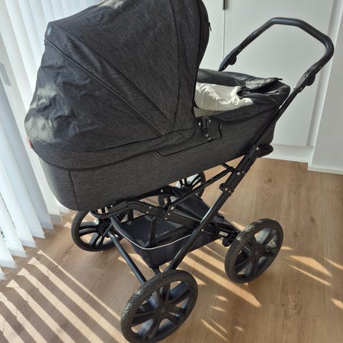 Meget vedligeholdt Odder North børnevogn fra 2021 inklusiv regnslag, insekt net, baby sele og ryglæn