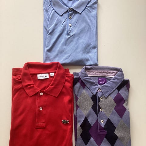 Sand polo, korte ærmer, med krave og 3 knapper i hals. Str. XL. Farve= sand / creme / flødefarvet. Som ny. Mål under ærmer = 61 cm. B = 55 cm, L = 83 cm.