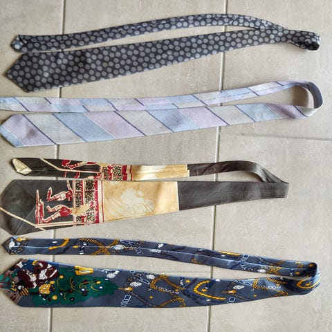 Herre slips parti i blandede farver og mønstre. Forskellige klassiske slips i mange nuancer, herunder ensfarvede og mønstrede varianter som striber og tern. Egnet til herrebrug til både formelle og mere afslappede anledninger. Antal, materialer og enkelte mærker kan variere fra slips til slips, som det fremgår af billederne.