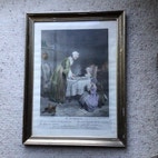 Antik Kobberstik, motiv: Le Benedicite, b: 35 h: 46. Håndkoloreret år 1744