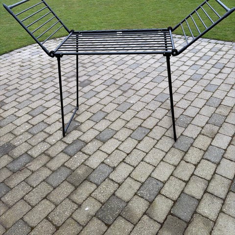 Robust, rustbeskyttet materiale: vores moderne indtrækkelige vægtørrestativ er holdbart takket være kvalitetsmaterialer. Det har jernstænger med rustbeskyttende belægning og egner sig til almindelig tørring af tøj.