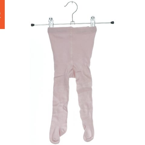 Lyserøde babybukser med et diskret mønster. Bukserne er af en blød bomuldsmateriale og egnet til små børn. De har elastisk talje og korte ben, der når til omkring anklen. Der er ingen synlig lukning eller knapper.