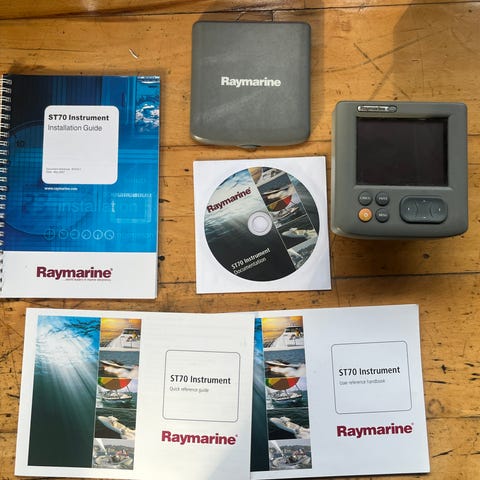 Raymarine ST70 autopilot betjening, farvedisplay med STng tilslutning, har været monteret inden i båden. Manualer og monteringsskruer medfølget.