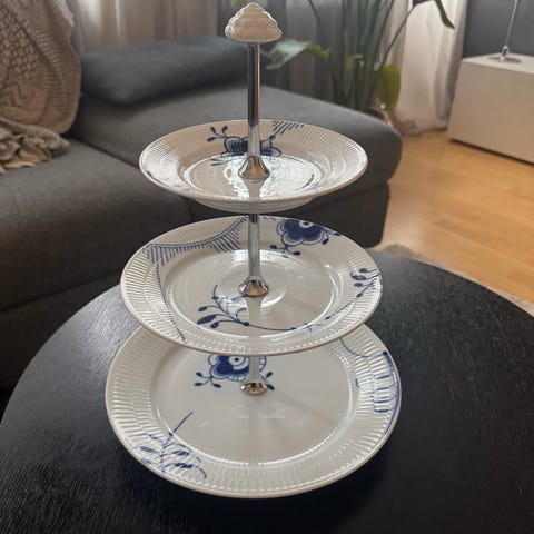 Royal Copenhagen etagere porcelæn hvid med rødt mønster