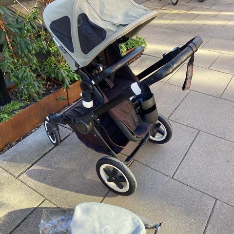 Den er blevet brugt til rejser - kan nemt klappes sammen og tages med op i flyet - og transport til og fra vuggestuen. Der medfølger desuden også et regnslag.
