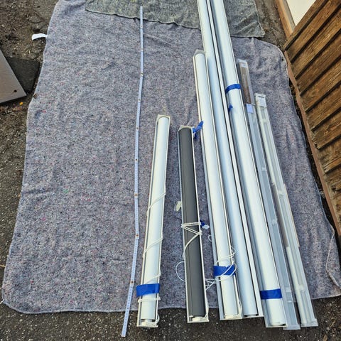 Hulkelister til bord. En liste koster 249 ca.. i Bauhaus. Der er 2: den ene er en bøg som desværre er knækket, og en hvid. i flere dele. Det er ca. 4.5 meter ialt foto kommer