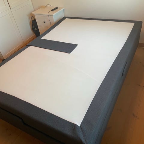 Sengeramme med to skuffer, er oprindeligt 90x200 men kan slåes ud til en 180x200