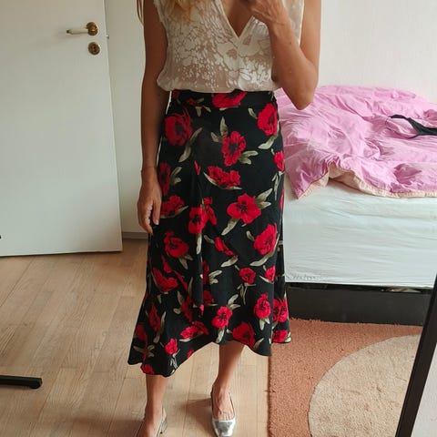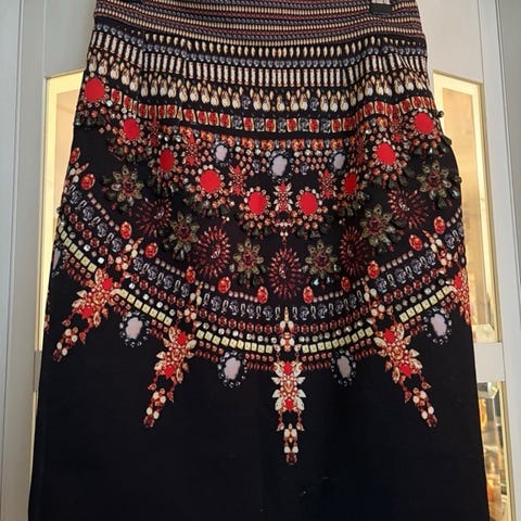 Smuk mønstret lang slå om nederdel med perler. Boho / romantisk stil