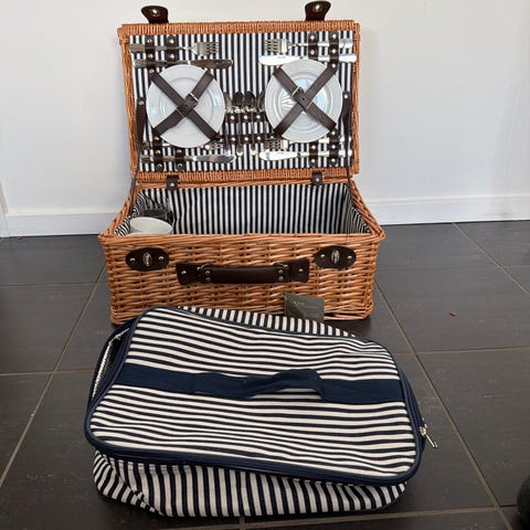 Indhold: Inkl. picnic-tilbehør (keramiske tallerkener, bestik m.m.)