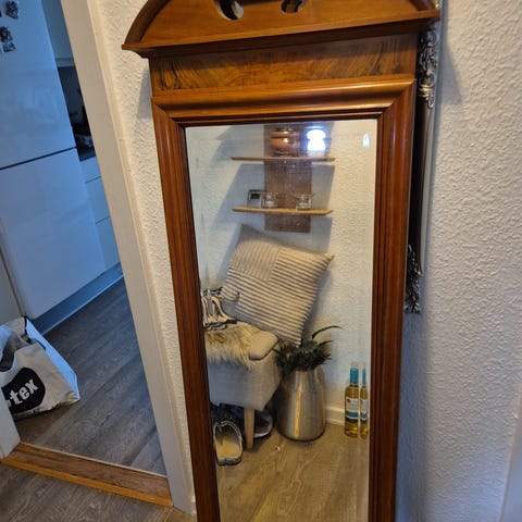Antikt malet Entrespejl,fransk stil med facetslebet glas (nyere glas)