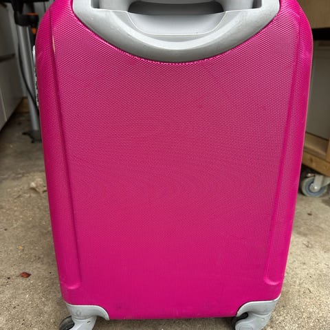Kuffert i en rosa/sølv farve, der er brugt meget få gange og har enkelte små ridser.