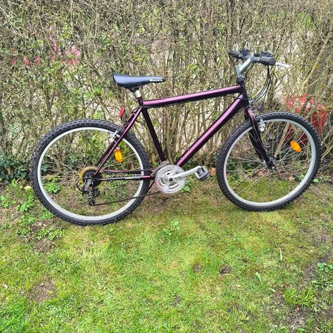 Rocky herre bycykel med ca. 48 cm stel og 26" hjul. Cyklen har lige styr og saddel i herremodel. Udstyret med Shimano SIS gearskifter på styret og dæk med mønster, der egner sig til både bykørsel og lettere grusveje. Farven er mørk metallic. Velegnet til en mandlig rytter, der passer til stelstørrelsen på ca. 48 cm og 26" hjul.