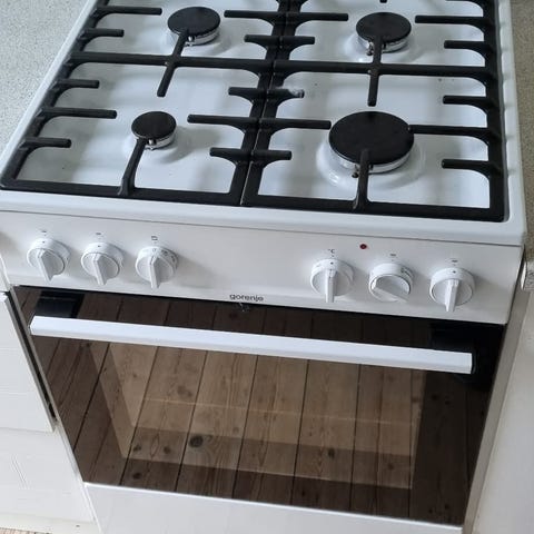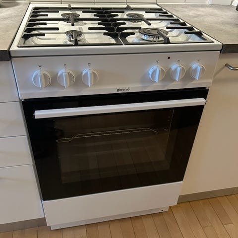 Gorenje gaskomfur med fire gasblus og integreret ovn. Det er under to år gammelt og sælges udelukkende grundet flytning. Prisen skyldes, at vi flytter om lidt og derfor bare skal af med det, men det fejler intet. Nypris var omkring 3900 kr. Komfuret har frontbetjente drejeknapper til regulering af blus og ovn. Overfladen er i lys farve med metalriste over brænderne. Egnet til almindelig madlavning i køkkenet, hvor der ønskes gasblus kombineret med ovnfunktion.