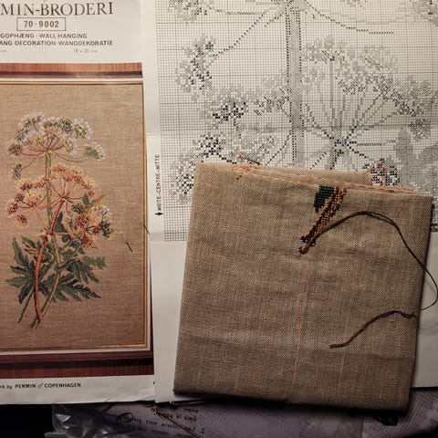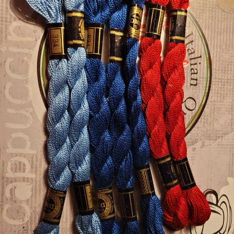 Der er 7 bunder dmc garn. Og stof mønster