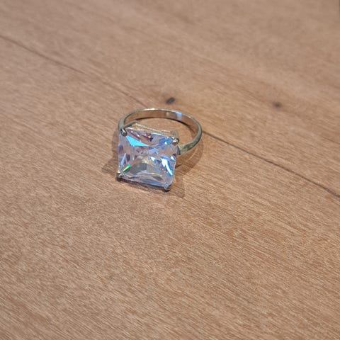 Smuk sølvring med zirkoner,som set på billedet, kanten af zircons er let afskallet