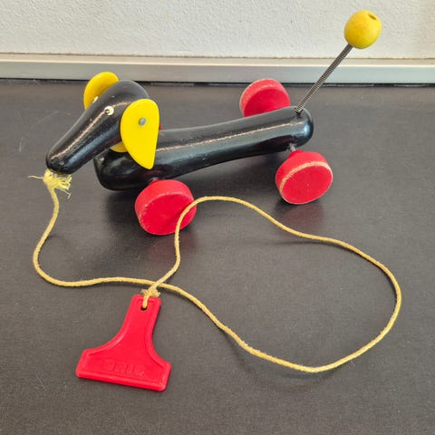 retro BRIO Hund, Retro trækhund fra BRIO, brugt men i original stand. Trænger til en ny træksnor.