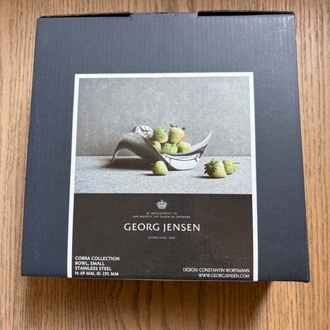 Den store Cobra serveringsskål er udført i blankt rustfrit stål.