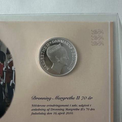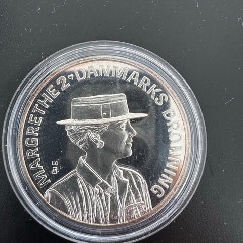 Danmarks Nationalbank Margrethe 2. 200 kroner mindemønt i sølv fra 1990. Mønten er udgivet i anledning af dronning Margrethes 50-års fødselsdag den 16. april 1990. Forsiden viser et portræt af dronningen med teksten "Margrethe 2. Danmarks dronning". Bagsiden viser krone og blomst samt pålydende værdi 200 kroner og årstallene 1940-1990. Mønten er præget i legeringen 80 % sølv og 20 % kobber, har en diameter på 38 mm og en vægt på 31,1 g. Leveres i kapsel som vist på billederne. 500 kr. pr. Stk. sælges individuelt eller samlet.