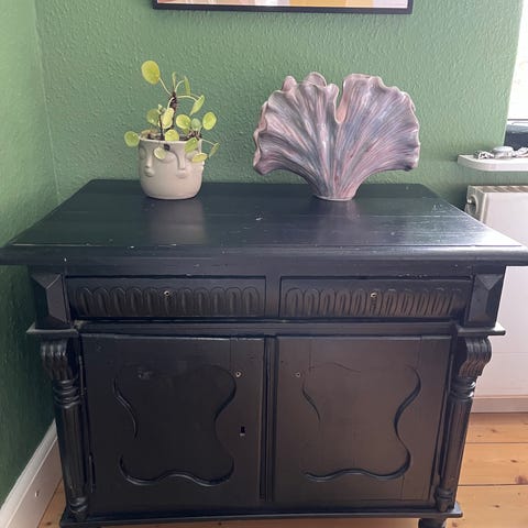 Lille sort skab med en skuffe, sort malet