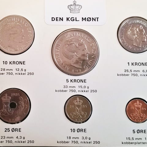 DET KGL MØNTSÆT 1984 Margrethe II TOP Stand! 10 kr KRONE 1984, 5 kr KRONE 1984, 1 kr KRONE 1984, 25 ØRE 1984, 10 ØRE 1984, 5 ØRE 1984, Porto 25kr. Op til 100gram!