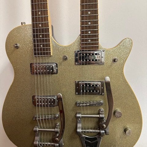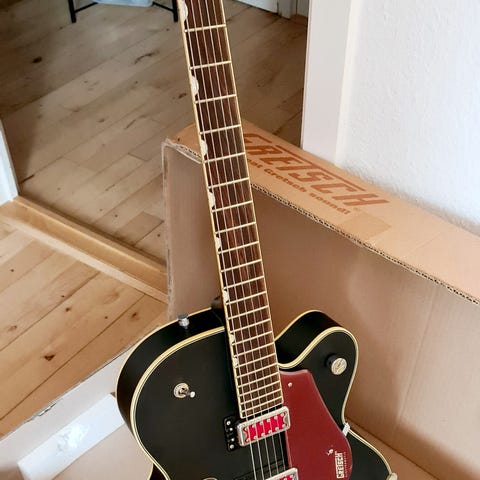 Gretsch Dobro Roundneck V Shape Mojotone 59 clone lowind Humbucker Guitaren har været i før men Tone Potentiometeret gik i stykker men er nu skiftet god sustaine justeret med Daddario 13-56 ingen bytte desværre og bud vil ikke blive besvaret Sender kun i dk forsendelse er med i prisen Mvh