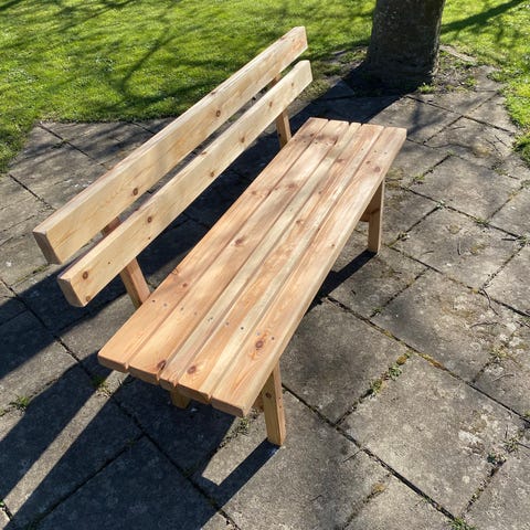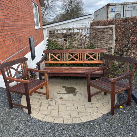 Bænkene er helt nye og lavet her i weekenden. Jeg fremstiller også nye bænke. Kontakt mig for mål og pris.