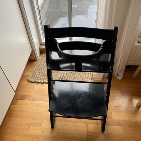 Den populære højstol fra stokke. Den har de der dutter på benene, så den står bedre fast.
