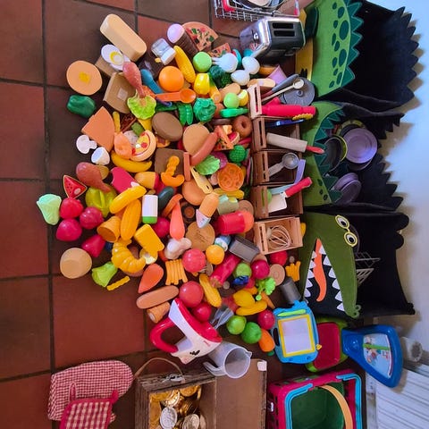 Mange forskellige legetøj ,nogle af træ, nogle af plastik.alt i fin stand fra røg og dyrfrit hjem.