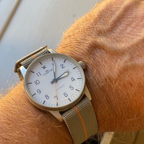 Uret har været anvendt i rotation med andre ure og er derfor i god stand. Der er små ridser i kransen tydligst ved klokken 6 og 12 og to mikroskopiske ridser i glasset omkring klokken 2; se billederne for standen.